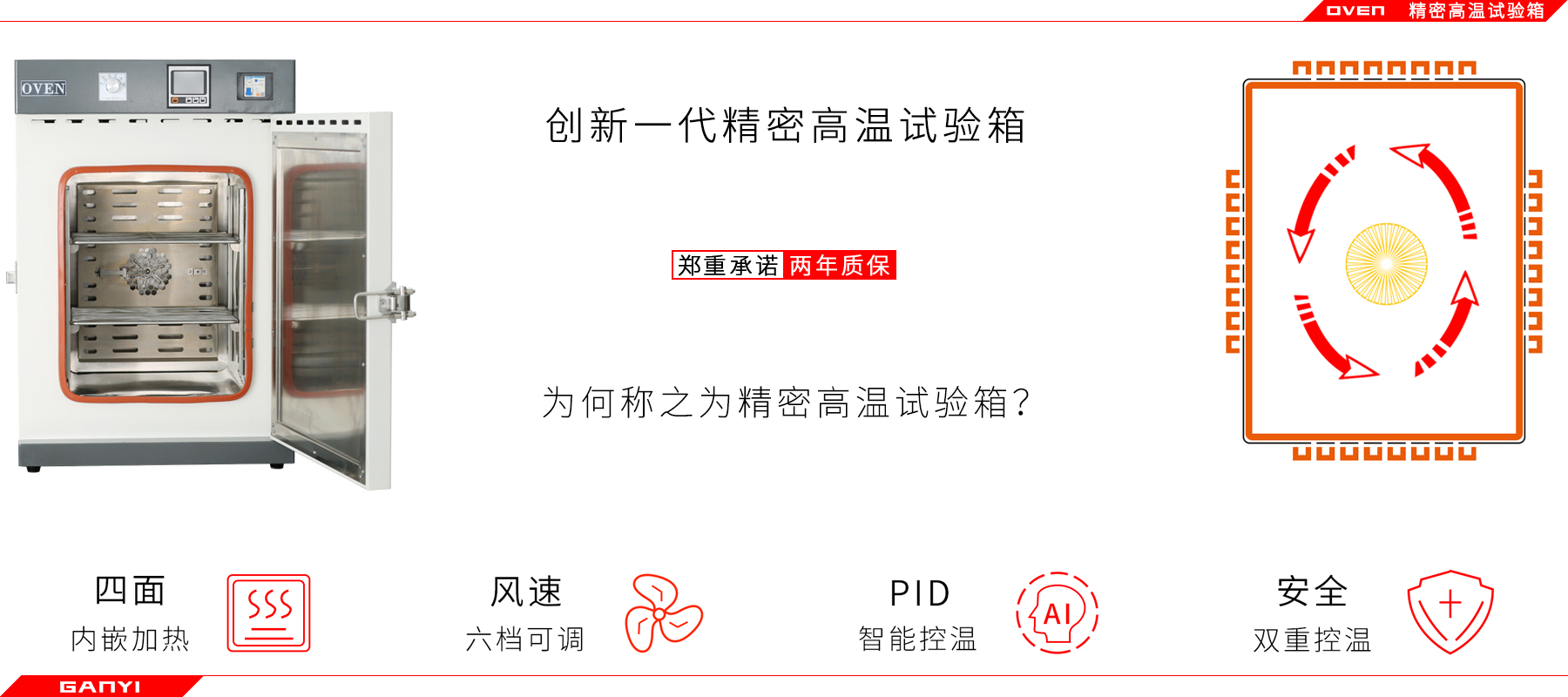 加热隔热:M型加热管内嵌入工作室四面,80mm玻璃纤维隔热棉加持空气夹层,确保外壳不烫手。